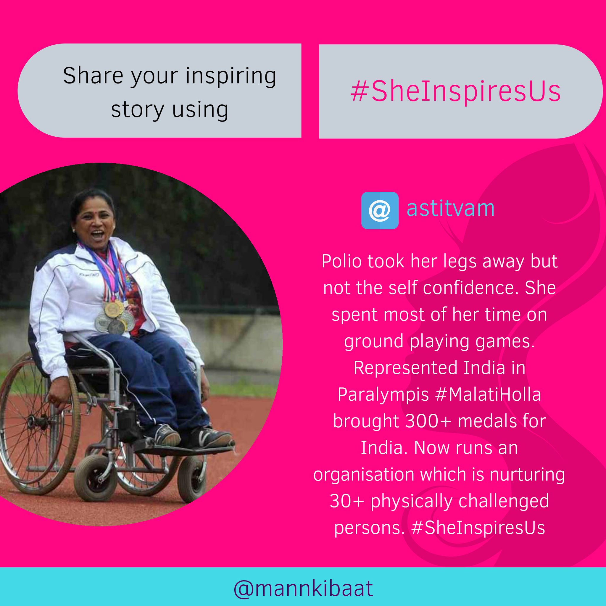 Itowe4nation On Twitter Sheinspiresus Malati Holla Suddering From Polio Achieved 300 Medals Represented India In Paralympics Is Now Nurturing 30 Physically Challenged Persons Https T Co Utfv1lmfbl - Indian paralympic athlete from india.